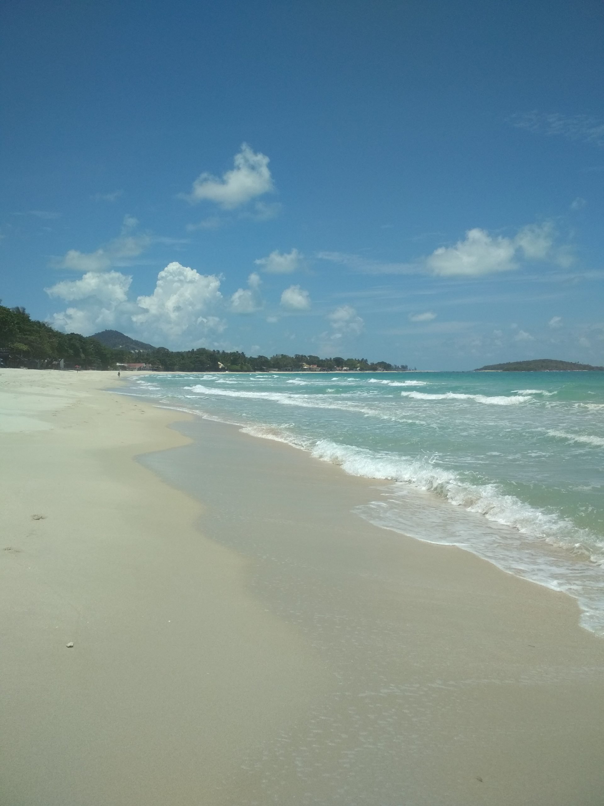Тут много солнца, бензин ощутимо подешевел, много свободного и дешевого жилья, очень мало туристов. Вот к примеру, самый популярный пляж Чавенг днем: